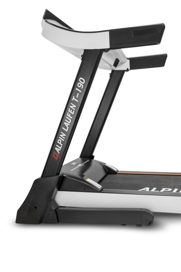 Беговая дорожка Alpin Laufen T190- надежная мощная дорожка. Она оснащена надежным двигателем с внушительной мощностью 3.0 л.с. в режиме постоянной нагрузки (или 5.0 л.с. пиковой мощности). Также она имеет особопрочную раму из толстого профиля. Данная беговая дорожка способна выдержать пользователя вплоть до 140 кг.