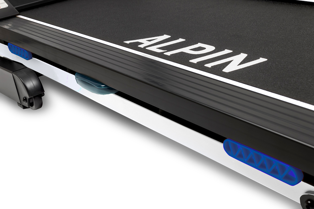Одной из самых важных составляющих беговой дорожки является система амортизации. В Alpin Marathon T180 White используется связка из 4 плоских эластомеров и 2-х гидро-подушек, что позволяет существенно снизить нагрузку на суставы ног и позвоночник.