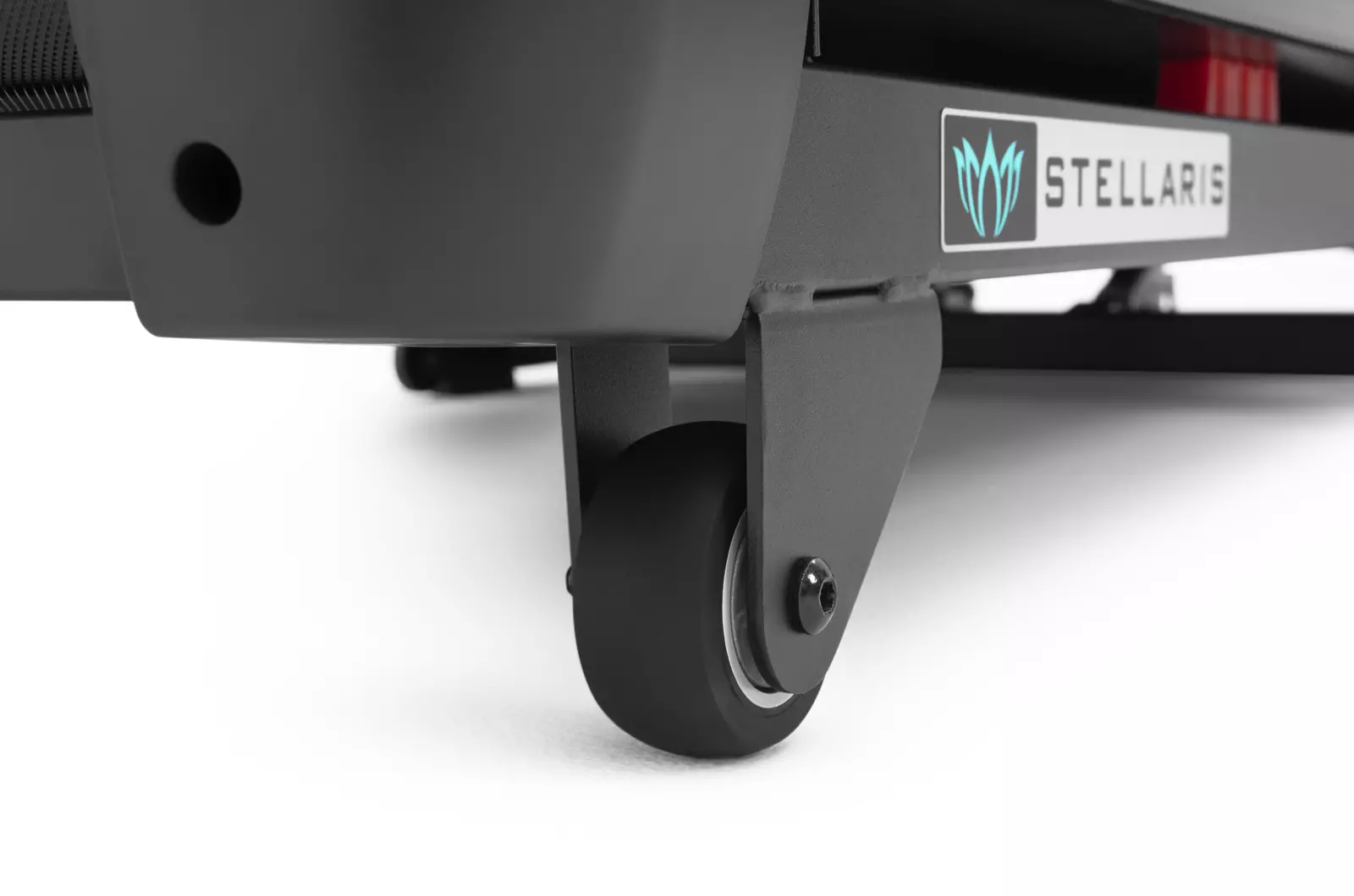 Размер бегового полотна Aura Labs™ Stellaris составляет 143,5 см в длину и 51 см в ширину – это комфортный и безопасный размер для ходьбы и бега на любых скоростях. Полотно Forbo™ Black Diamond толщиной 1.8 мм с текстурированным антискользящим покрытием от итальянской Forbo Inc. (поставщик полотен для Technogym) признано наиболее долговечным в использовании. Дека установлена от южнокорейской NIM™ – это тоже проверенный временем производитель высококачественных компонентов для фитнес индустрии. Амортизация хорошего среднего уровня, построенная с использованием 4-х полиуретановых амортизационных подушек, обеспечивает пониженную ударную нагрузку на суставы ног и позвоночник.