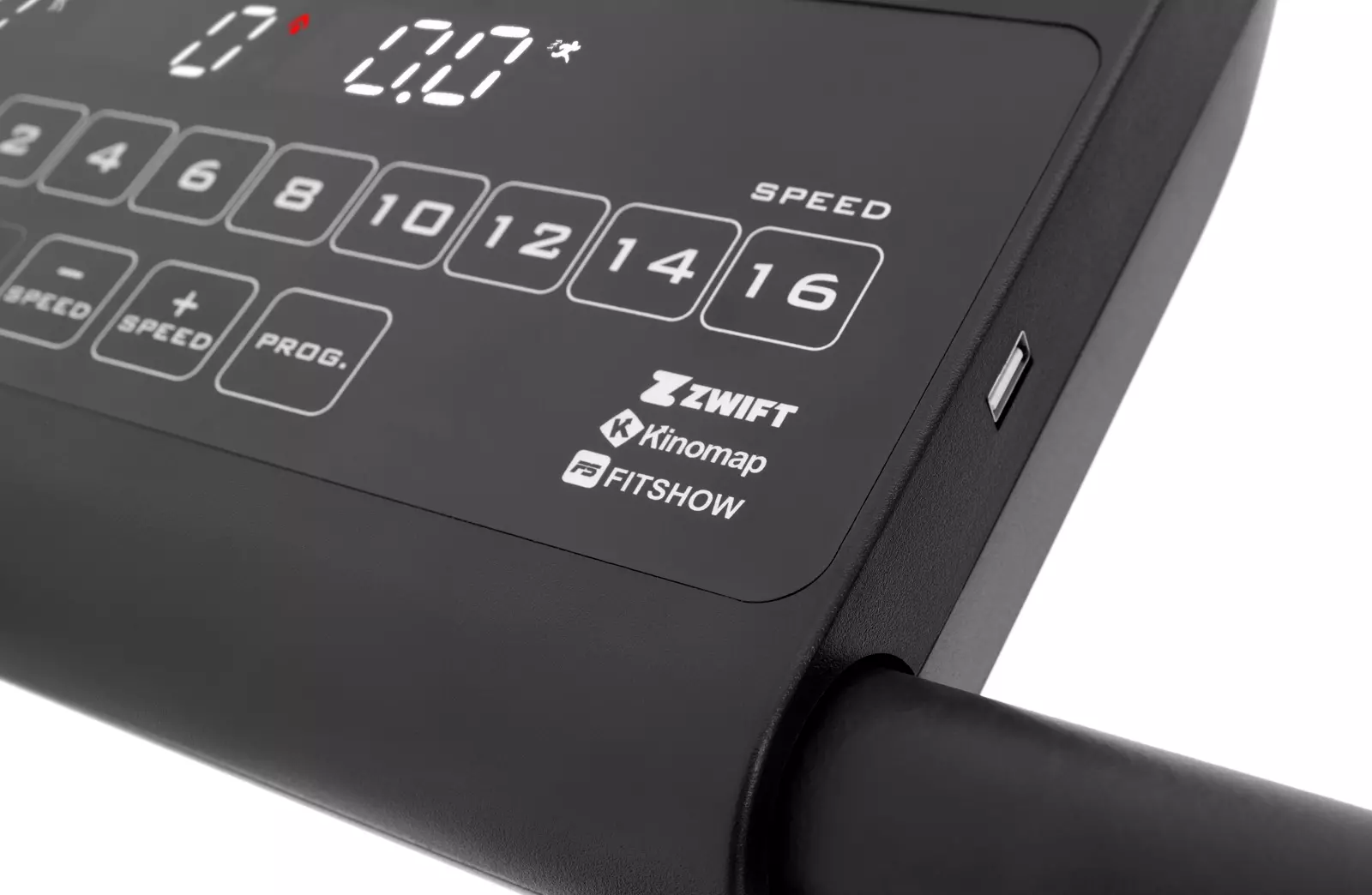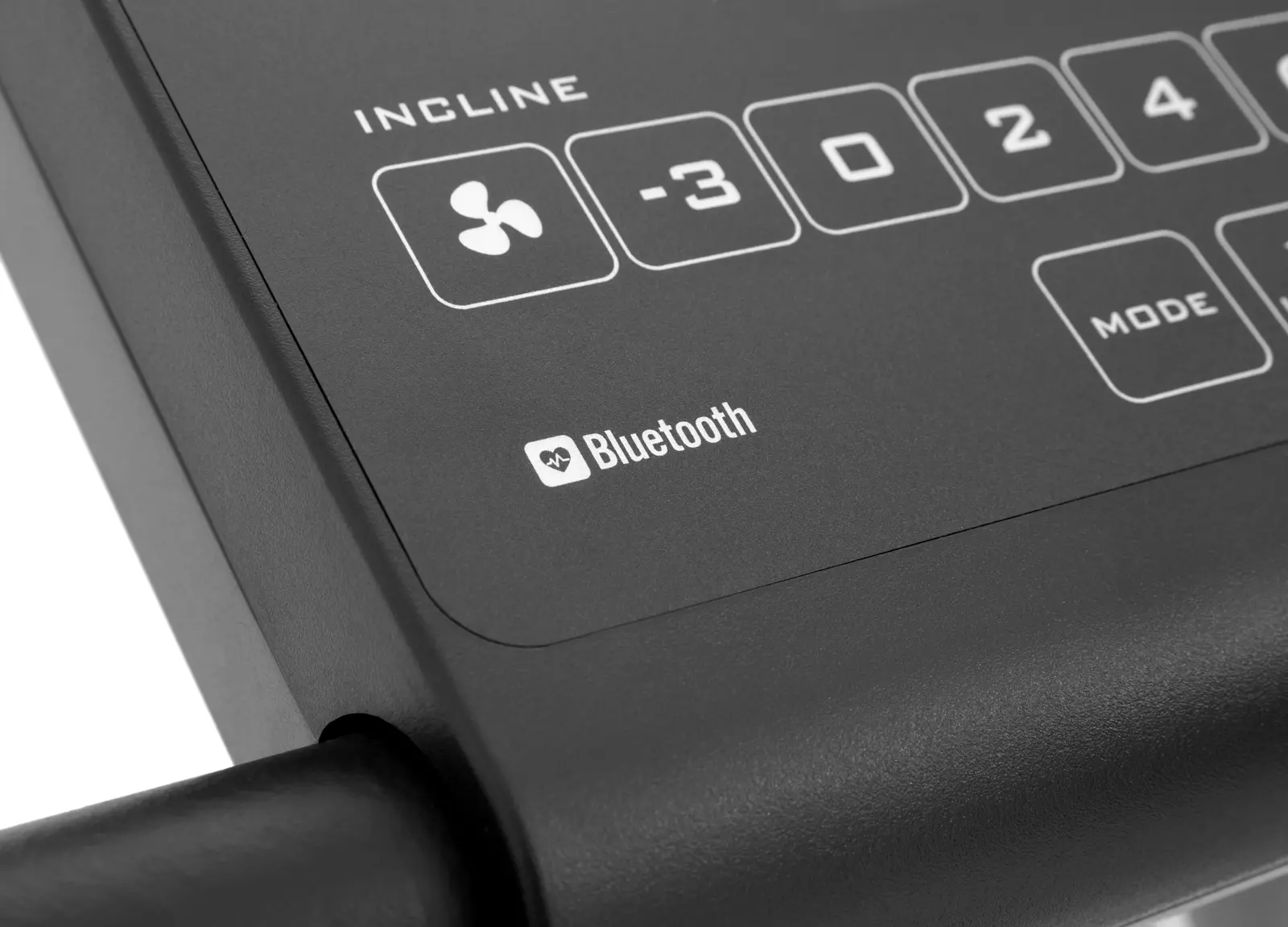 Помимо мощного мотора и большой беговой зоны, здесь есть отрицательный угол наклона, система автоматического складывания, проводная и беспроводная зарядка телефона, Bluetooth™ передатчик пульса, подключаемые "по воздуху" приложения и музыка. Здесь есть даже двухфазный вентилятор.