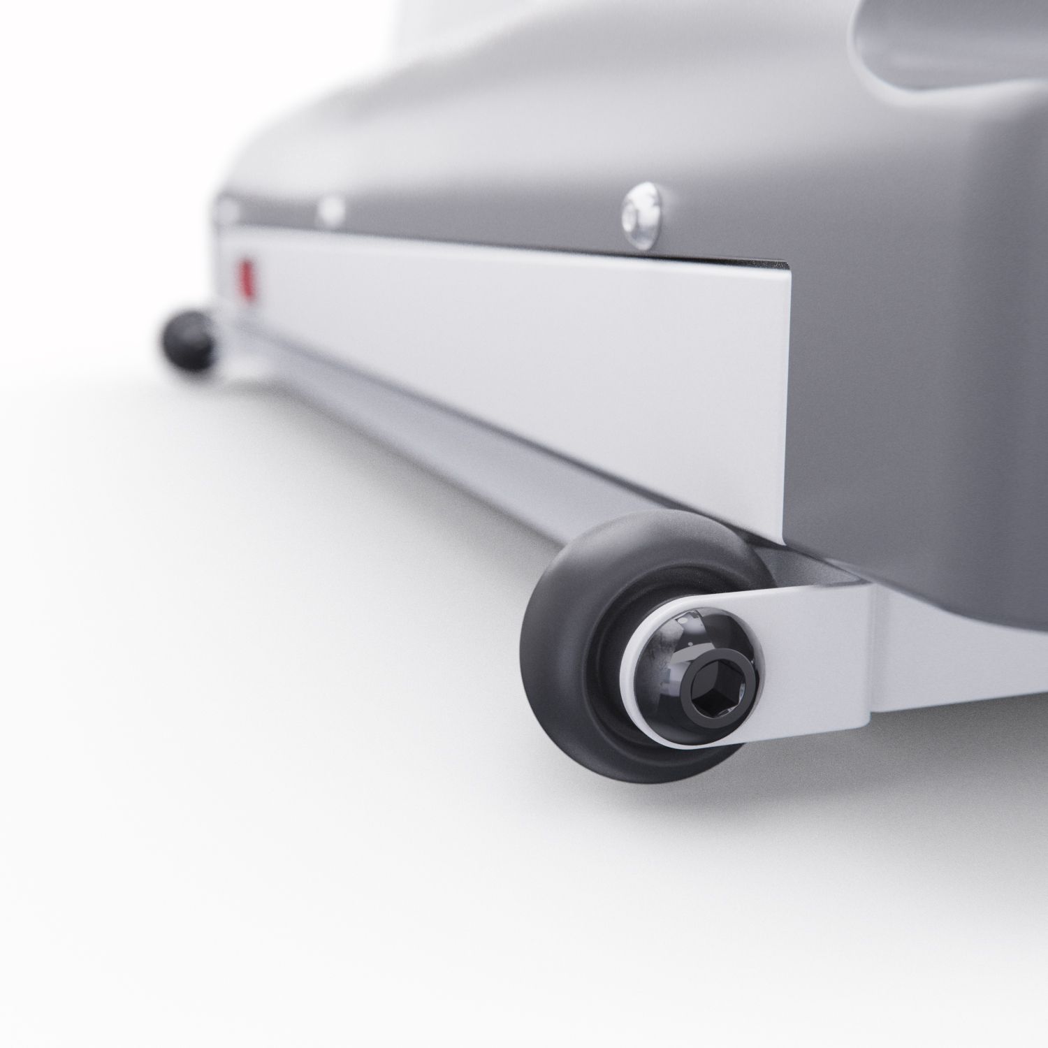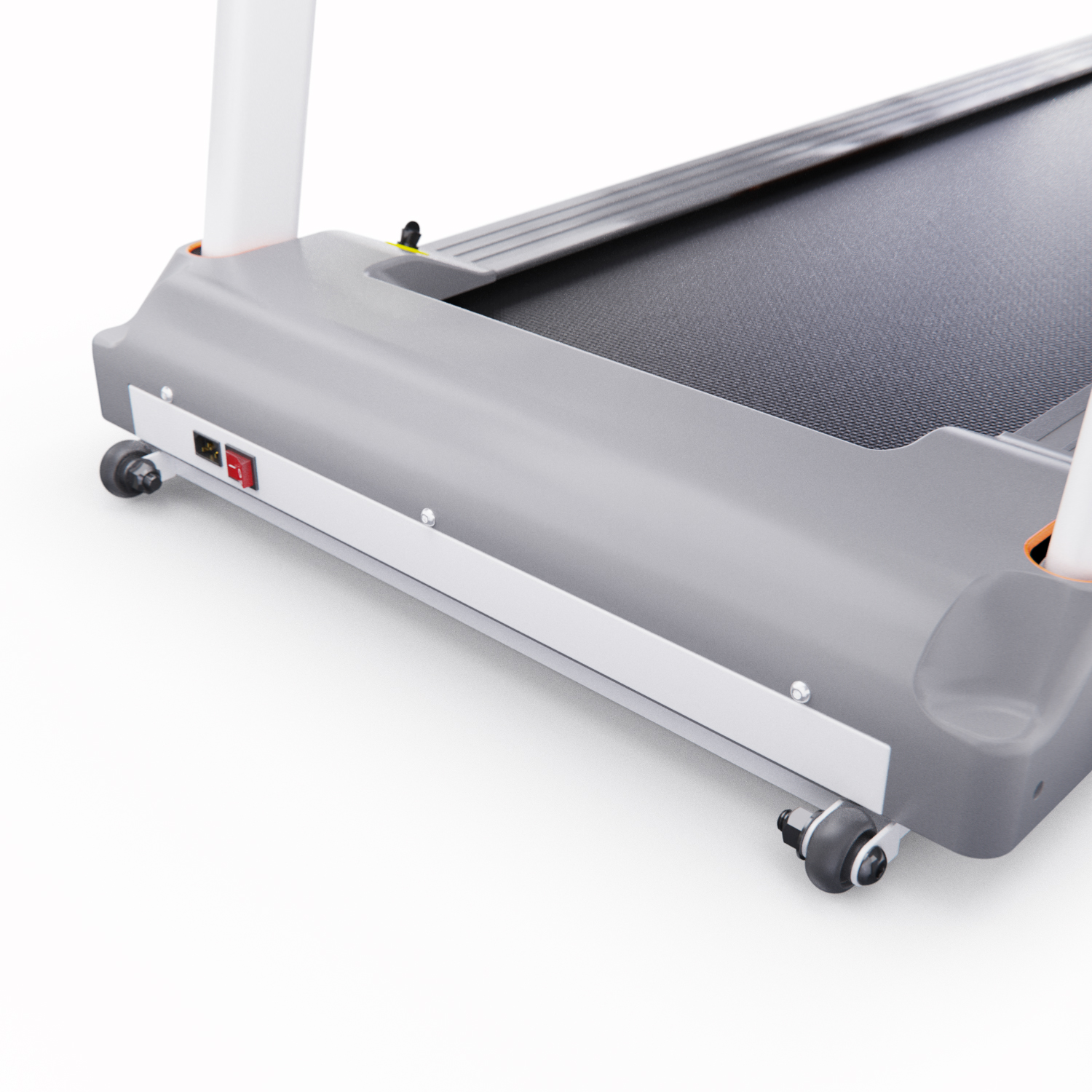 Амортизационная система состоит из 4 резиновых и 2 силиконовых амортизаторов, что гарантирует комфорт во время бега. Транспортировочные ролики и компенсаторы неровности пола облегчают установку и использование дорожки.