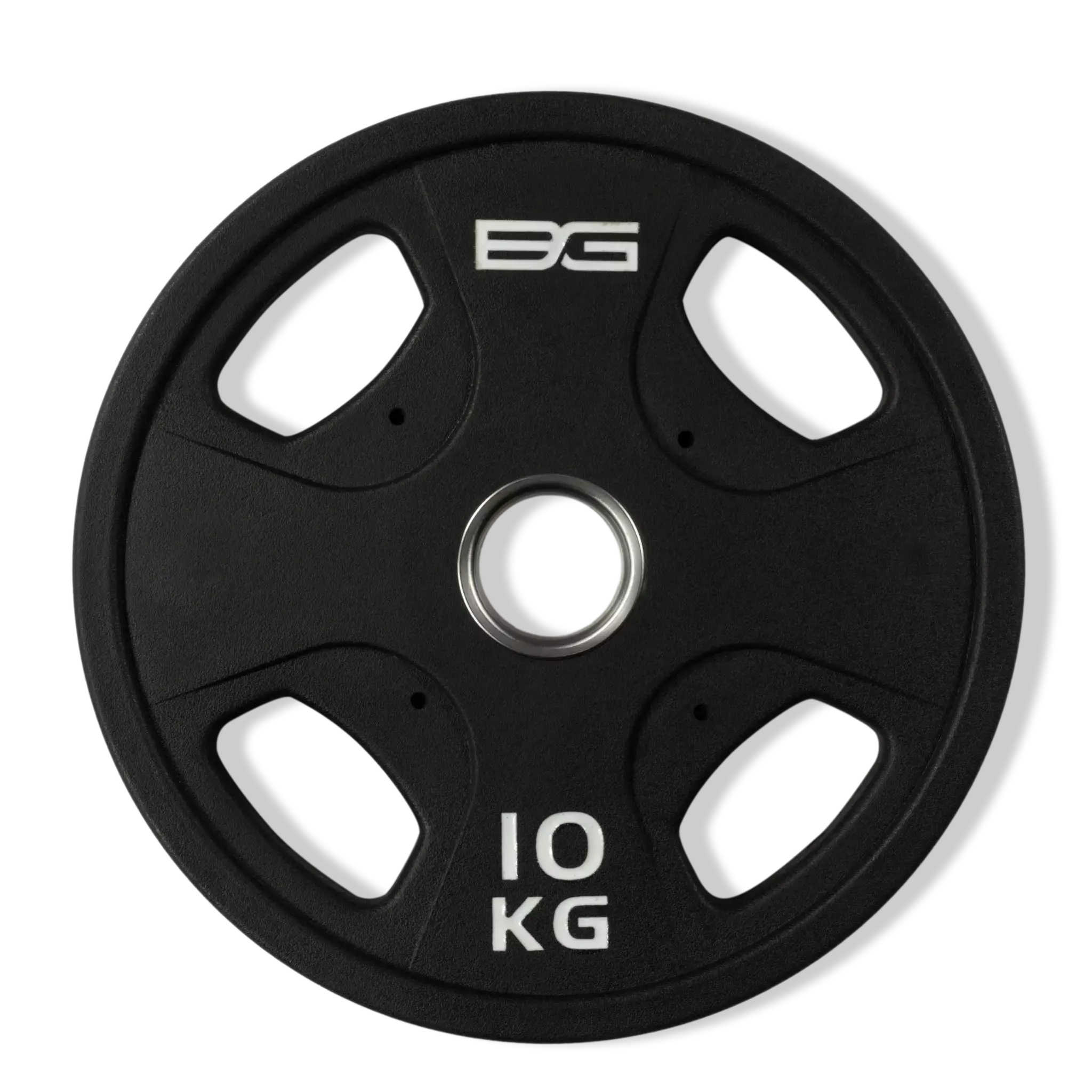 Каждая модель диска имеет четыре отверстия для надежной фиксации и выполнения упражнений без штанги. Втулка диска имеет диаметр 51 мм, что подходит для любой олимпийской штанги.