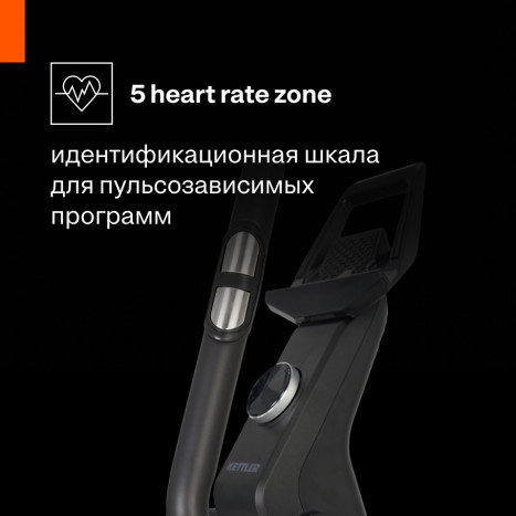 Предусмотрена функция 5 heart rate zone. Это идентификационная шкала для пульсозависимых программ в виде 5 зон сердечного ритма, основанная на показателях частоты сердечных сокращений. На дисплее отображается актуальная пульсовая зона, чтобы вы могли следить за безопасностью тренировки и регулировать ее интенсивность.