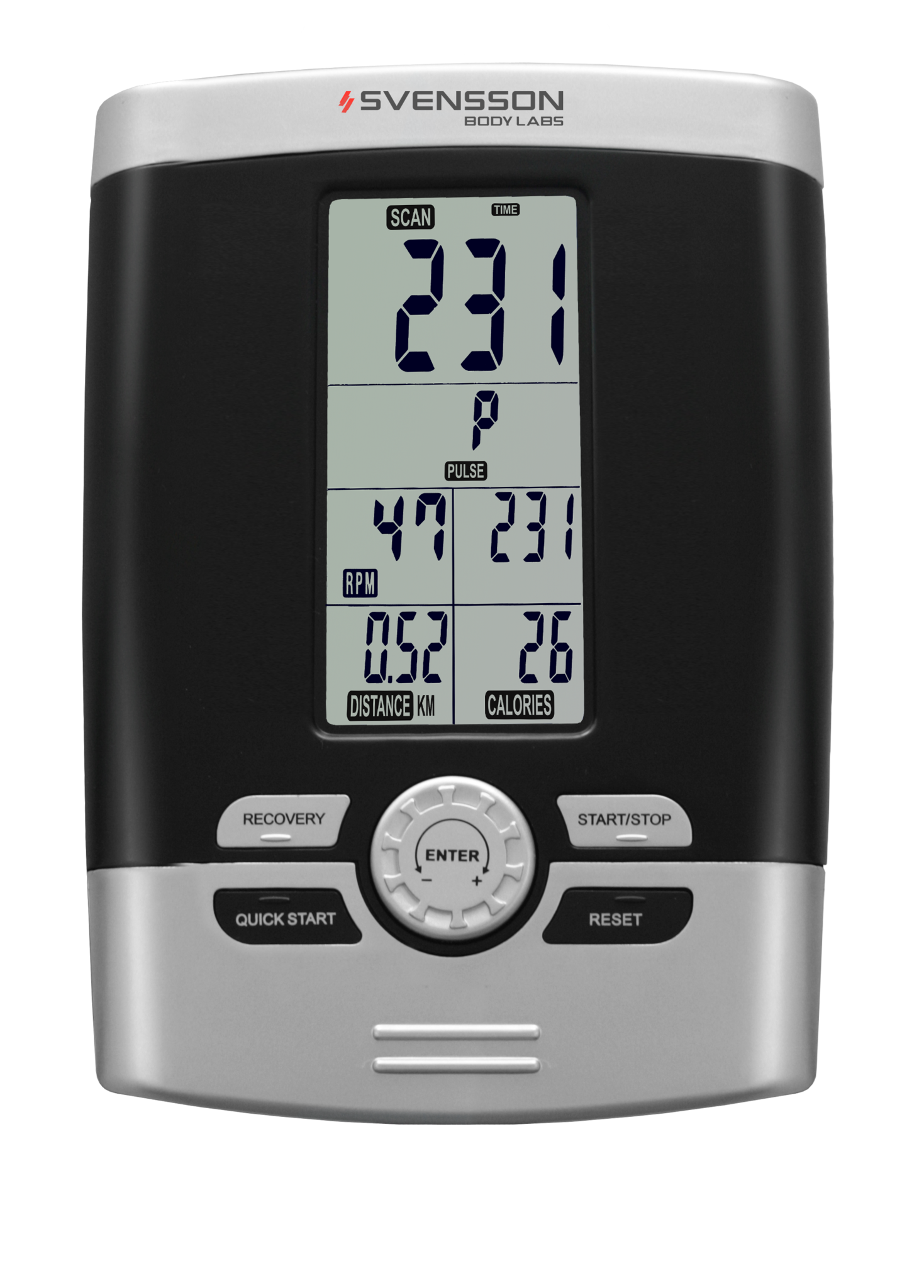 Тренировочный компьютер представлен черно-белым LCD-дисплеем диагональю 14,5 см. На экран выводятся все основные параметры тренировки - время, дистанция, скорость, калории, обороты в мин. и пульс. Регулировка нагрузки регулируется механическим путем в 8 положениях. По завершении тренировки функция Recovery оценит способность сердечно-сосудистой системы к восстановлению.