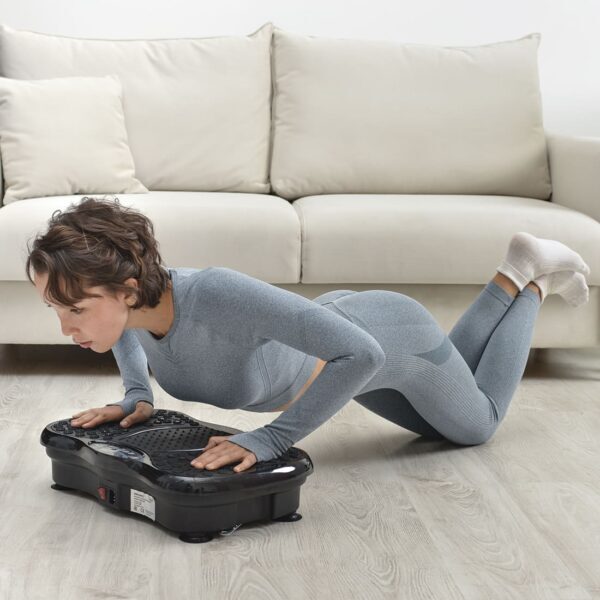 Его эффективность основана на вибрационных технологиях, благодаря которым мышцы рефлекторно сокращаются до 50-60 раз в секунду. Всего 10 минут упражнений на вибротренажере равноценны 2 часам занятий в тренажёрном зале. Такой массажер для тела в короткие сроки поможет снизить вес, уменьшить целлюлит, укрепить мышцы, улучшить состояние суставов, сделать позвоночник более гибким, а мышцы эластичными. Виброплатформа – щадящий тренажёр для сердца и сосудов, занятия с прибором помогают укрепить сердечно-сосудистую систему. Дополнительное преимущество фитнес-тренажёра – акупунктурная поверхность, которая положительно воздействует на нервную систему, ускоряет кровоток и обменные процессы. Эспандеры в комплекте помогут создать дополнительную нагрузку на мышцы рук – сделать их подтянутыми и красивыми. Устройство оснащено 10 автоматическими программами и пультом управления. Также интенсивность тренировки можно настроить вручную – выбирайте свой вариант из 99 режимов вибрации. Частота вибрации 7.4 — 12,5 Гц. Максимальный вес пользователя 135 кг.