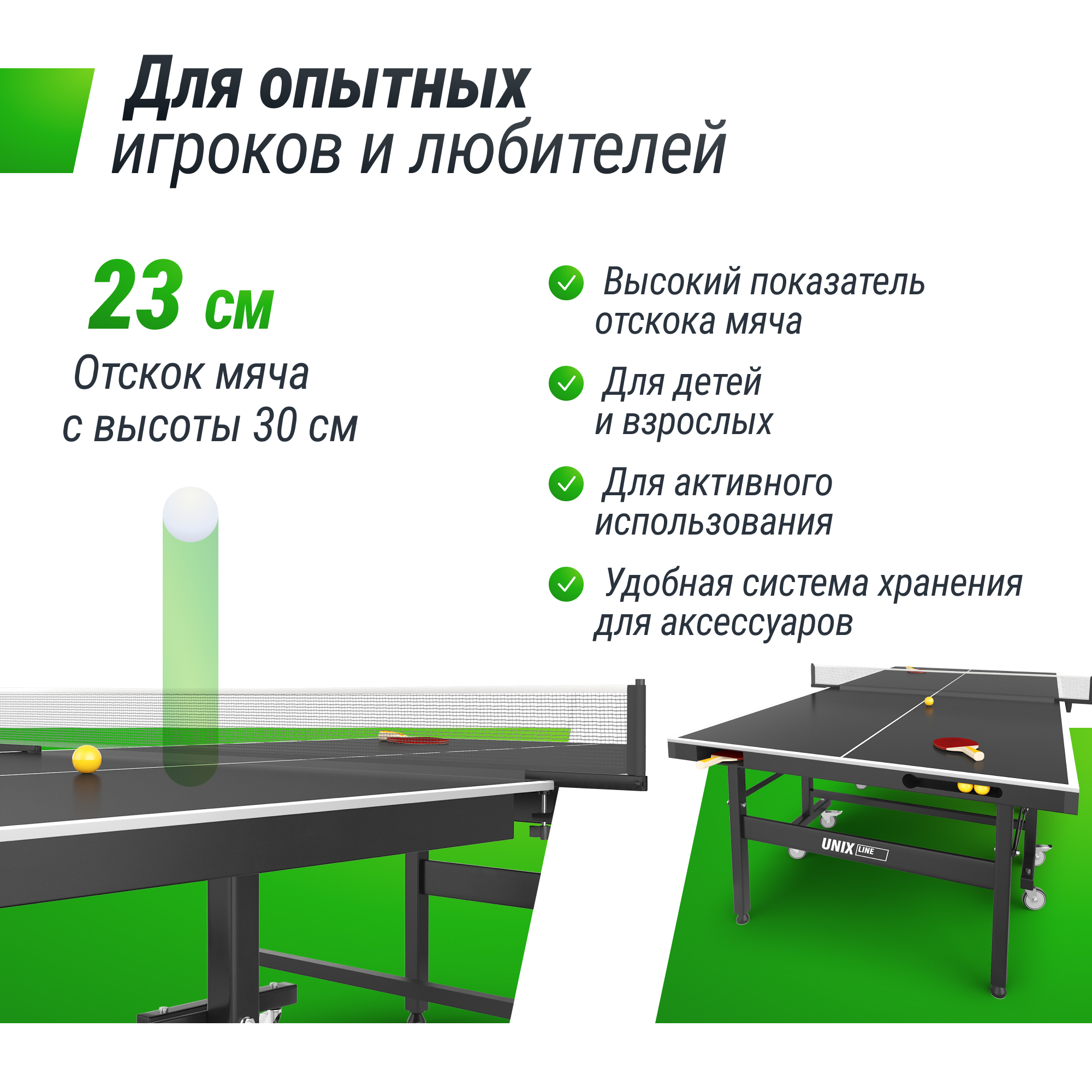 Игровая поверхность всепогодного стола обеспечивает отличный отскок мяча и равномерное распределение силы удара. Вы сможете сосредоточиться на игре и развивать навыки, не отвлекаясь на недостатки оборудования.